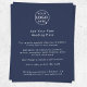 A simple custom navy blue business flyer template in a modern minimalist style, perfect for showcasing your products, services, promotions, or events. This clean, professional design can be easily personalized with your company logo, contact information, and custom text to create a cohesive branded marketing piece. Ideal for small businesses, boutiques, studios, or corporate promotions, this versatile flyer provides the perfect layout for highlighting key details such as pricing, offers, or upcoming events. With its modern, uncluttered look and easy-to-edit format, it’s a timeless and effective way to present your business with style and confidence.