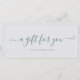 Simple and elegant minimalist script blue grey gift certificate. This elegant script Gift certificate fits perfectly within a standard #10 business envelope. Perfect for your brand and business.