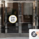 In the centre, there's a display image. You can replace it with your business logo, which will appear on a white circle. The window cling has a faux (not foil) gold border.