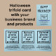 Horror, scary, spooky, creepy, ghost, monster, skull, pumpkin and so on. Happy Halloween! Holiday to scare but not to scare customers or clients. Holiday to celebrate this October and to advertise also your business. Trifold card with Halloween greeting that you can customise to put your business name, products or services and other information of your business. Trifold card as brochure for your business. You can put up to three products or services. Customise it and use it to greet your customers or clients this Halloween and as a marketing material to advertise your business and to promote your products or services. Design colours are black and dark blue texts on light blue background. To customise this trifold card, upload your business logo and images of your products or services. Type also your business name, address, phone number, e-mail, website or your business social media page and short attractive description of your products or services. Please check the appearance on all sides after uploading images and typing texts. If the appearance is pleasing to you, you can place your order now. If you need to resize and move the images and texts to fit on this trifold card, please change in the design tool. You can also change the background colour, font colour and font style in the design tool. Advertise your business. Promote your brand name. Customisable trifold card that you can use to build brand name awareness. Happy Halloween! Wishing you more sales this holiday season.