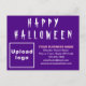 Horror, scary, spooky, creepy, ghost, monster, skull, pumpkin and so on. Happy Halloween! Holiday to scare but not to scare customers or clients. Holiday to celebrate this October and to advertise also your business. Customisable holiday postcard that you can put your business brand and with Halloween greeting. Customise it and use it to greet to your customers or clients this Halloween. You can also use it as marketing material to advertise your business or to promote your brand name. Customisable holiday postcard that you can use to build brand name awareness. Design colours are pink and white texts on purple background. To customise this postcard, type your business name, address, phone number, e-mail, website or social media page and upload your business logo. After typing texts and uploading logo, please check the appearance. If the appearance is pleasing to you, you can place your order now. If you need to resize and move the texts and logo to fit on this postcard, please change in the design tool. You can also change the font style, font colour and background colour in the design tool. You can also add images and texts on the back side in the design tool. Happy Halloween! Wishing you more sales this holiday season.