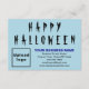 Horror, scary, spooky, creepy, ghost, monster, skull, pumpkin and so on. Happy Halloween! Holiday to scare but not to scare customers or clients. Holiday to celebrate this October and to advertise also your business. Small size flat greeting card that you can customise to put your business brand and with Halloween greeting. Customise it and use it to greet your customers or clients this Halloween and as marketing material to advertise your business or to promote your brand name. You can also use it as accessory of packaging material of your product. Customisable greeting card that you can use to build brand name awareness. Design colours are black and dark blue texts on light blue background. To customise greeting this card, upload your business logo, type your business name, address, phone number, e-mail and website or your business social media page. Please check the appearance after uploading logo and typing texts. If the appearance is pleasing to you, you can place your order now. If you need to resize and move the logo and texts to fit on this card or on other sizes that you will choose, please change in the design tool. You can also change the background colour, font colour and font style in the design tool. Happy Halloween! Wishing you more sales this holiday.