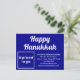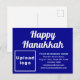 Happy Hanukkah! Wishing you joy, peace and blessing this festival of lights. Holiday to celebrate this December and to advertise also your business. Customisable holiday postcard that you can put your business brand and with Hanukkah greeting. Customise it and use it to greet to your customers or clients this Hanukkah. You can also use it as marketing material to advertise your business or to promote your brand name. Customisable holiday postcard that you can use to build brand name awareness. Design colours are light blue and white texts on blue background. To customise this postcard, type your business name, address, phone number, e-mail, website or social media page and upload your business logo. After typing texts and uploading logo, please check the appearance. If the appearance is pleasing to you, you can place your order now. If you need to resize and move the texts and logo to fit on this postcard, please change in the design tool. You can also change the background colour, font colour and font style in the design tool. You can also add images and texts on the back side in the design tool. Happy Hanukkah! Wishing you more sales this holiday season.