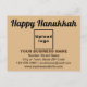 Happy Hanukkah! Wishing you joy, peace and blessing this festival of lights. Holiday to celebrate this December and to advertise also your business. Postcard card that you can customise to put your business brand and with Hanukkah greeting. Customise it and use it to greet your customers or clients this Hanukkah and as marketing material to advertise your business or to promote your brand name. Customisable postcard that you can use to build brand name awareness. Design colours are black and dark brown texts on light brown background. To customise this postcard, upload your business logo, type your business name, address, phone number, e-mail and website or your business social media page. Please check the appearance after uploading logo and typing texts. If the appearance is pleasing to you, you can place your order now. If you need to resize and move the logo and texts to fit on this postcard, please change in the design tool. You can also change the background colour, font colour and font style in the design tool. You can also add images and texts on back side of this postcard in the design tool. Happy Hanukkah! Wishing you more sales this holiday.