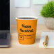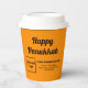 Happy Hanukkah! Wishing you joy, peace and blessing this festival of lights. Holiday to celebrate this December and to advertise also your business. Paper cup for your cafe business that you can customise to put your business brand and with Hanukkah greeting. Customise it and use it to greet your customers this Hanukkah and to advertise your business or to promote your brand name while your customers enjoy sipping the tasty aromatic coffee that you served to them. Customisable paper cup that you can use to build brand awareness. Design colours are black texts on orange colour background. To customise this paper cup, upload your business logo, type your business name, address and phone number. Please check the appearance on front and back sides after uploading logo and typing texts. If the appearance is pleasing to you, you can place your order now. If you need to resize and move the logo and texts to fit on this paper cup, please change in the design tool. You can also change the background colour, font colour and font style in the design tool. Happy Hanukkah! Wishing you more sales this holiday.