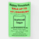 Happy Hanukkah! Wishing you joy, peace and blessing this festival of lights. Holiday to celebrate this December and to advertise also your business. Customisable banner with Hanukkah Sale, your business name and other information. Banner that you can use as marketing material to attract more customers. Customise it and display it to convince more customers to buy your products or clients to like your services. Design colours are dark green and red texts on light green background. Contents are Happy Hanukkah greeting, sale texts with percent discount that you will offer, sale dates, your business name, logo, address, phone number, e-mail and website or your business social media page. Please check the appearance after uploading logo and typing texts. If the appearance is pleasing to you, you can place your order now. If you need to resize and move the logo and texts to fit on this banner or on the size that you will choose, please change in the design tool. You can also change the background colour, font colour and font style in the design tool. Happy Hanukkah! Wishing you more sales this holiday.