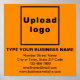 Square poster that you can customise and display it on the wall of your office, entrance or in suitable places visible to your clients or customers to advertise your business or promote your brand name. Customise it to build brand name awareness. Colour is orange and font colour is black. To customise this poster, upload your business logo, type your business or company name, address, phone number, e-mail and website or social media page. Please check the appearance after uploading logo and typing texts. If the appearance is pleasing to you, you can place your order now. If you need to resize and move the logo and texts to fit in this poster or in other shapes and sizes that you will choose, please change in the design tool. You can also make other changes according to your preference in the design tool such as changing the poster colour, font colour and font style.