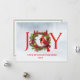 Send personalised Christmas greetings to your clients and partners this holiday season. This card, designed to express your gratitude for your relationship, features the word Joy as a central element on the front. A Christmas wreath with a red cardinal intentionally replaces the letter O, adding a unique touch. Your business name, the year, and a snowy background complete the design. The back of the card offers space for a customised message, your logo, and your website. Don't wait any longer to make your recipients feel special with your order today!