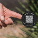 A modern black minimalist personalised scannable business sticker with business QR Code and text. Personalise with your QR Code and text and create your own professional business stickers. Professional business labels perfect for business packaging and business branding. A custom round QR Code sticker.