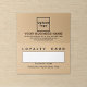 Customisable two fold loyalty card with space for the name of your loyal customers. The colour is light brown. Font colours are dark brown and black. To customise this loyalty card, upload your business logo, type your business or company name, address, phone number, e-mail, website or social media page and validity date of this loyalty card. Please check the appearance after uploading logo and typing texts. If the appearance is pleasing to you, you can place your order now. If you need to resize and move the logo and texts to fit on this loyalty card or on other styles that you will choose, please change in the design tool. You can also make other changes according to your preference in the design tool such as changing the card colour, font colour, font style, adding image, editing texts, adding texts and deleting texts. Loyalty card for your customers to convince them to buy again in your store or go back again in your shop to avail your service.