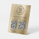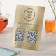 Modern and professional brushed gold faux metallic table top sign. Upload your logo and two QR codes for customers to scan for information, payment, a list of your products, services, prices, etc. Label the QR codes and add your business name, phone number, street address, website or other information in simple typography. Add your facebook and instagram user id for customers to follow you on social media.
