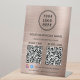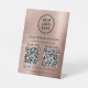 Modern and professional all-purpose rose gold faux metallic table top sign for your business. Upload your logo and two QR codes for customers to scan for payment, information, a list of products, services, prices, etc. Add your business name, phone number, street address, website or other information in simple typography. Also add your facebook and instagram user id for customers to follow you online.