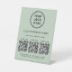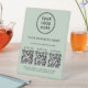 Modern and professional sage green table top pedestal sign for your business. Upload your logo and 3 QR codes for customers to scan for payment, information, a list of your products, services, prices, etc. Label your QR codes and add your business name, phone number, street address, website or other information in a simple font.