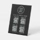 Give customers multiple ways to connect with your business using this multi-QR Code black pedestal sign, designed for clarity, flexibility, and a polished professional look. Featuring a clean layout, modern white lettering, and space for your logo and business name, this tabletop sign allows you to display up to 4 scannable QR codes, each with its own custom label for clear navigation. Ideal for restaurants, cafés, salons, boutiques, clinics, gyms, offices, events, and trade shows, this pedestal sign lets customers quickly access different destinations—such as your website, menu, booking page, pricing, reviews, social media profiles, or payment links—all from one convenient display. Freestanding and easy to place on counters, desks, or reception areas, this QR code pedestal sign helps streamline customer interactions, reduce printed materials, and support a modern, contactless experience while reinforcing your brand identity.