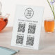 Give customers multiple ways to connect with your business using this multi-QR Code pedestal sign, designed for clarity, flexibility, and a polished professional look. Featuring a clean white layout, modern typography, and space for your logo and business name, this tabletop sign allows you to display up to 4 scannable QR codes, each with its own custom label for clear navigation. Ideal for restaurants, cafés, salons, boutiques, clinics, gyms, offices, events, and trade shows, this pedestal sign lets customers quickly access different destinations—such as your website, menu, booking page, pricing, reviews, social media profiles, or payment links—all from one convenient display. Freestanding and easy to place on counters, desks, or reception areas, this QR code pedestal sign helps streamline customer interactions, reduce printed materials, and support a modern, contactless experience while reinforcing your brand identity.