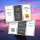 Neutral colours, tri-fold business logo brochure in small 5x8 size (design is made for this size paper - or view our larger size design). Customise six sections, three front and three back with white and black text, which is perfect for a male run business. Fonts are printed and easy to read written script. Include a QR code and logo image as needed - or delete these images. Lots of text space for business hours, about section, and shop location. Fold after purchase into thirds. Double check all text as it will not be proofread before printing. *This brochure design also comes in the 8x11 size. View our brochure collection.