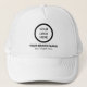 A white trucker hat designed with your business logo, brand name, and slogan. This stylish hat not only promotes your brand but also offers sun protection. Perfect for outdoor events, promotional giveaways, and as part of your branded merchandise.