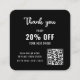 A minimalist custom business logo black and white QR code discount card for a professional business to use as a promotional tool to develop customer loyalty. Replace the image with a square photo of your logo. You can change the font, font colour, font size, letter spacing, background colour, colour of the Thank you graphic and reposition the text using the Design Tool. You can also change the social media icons so they are relevant to your business. The simple modern elegant design is yours to customise as you wish.