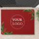 Personalise this stylish door mat with your professional business logo. Design features a simple logo on a festive red background with Christmas florals. Just in time for the holidays. Celebrate the season and grow your business with these modern trendy branded items. Easy to customise. Get yours today!