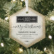 Personalised corporate business christmas ornament featuring your logo, a gold glitter trim, the saying "merry christmas" in a elegant script font, company name, promotional details, and the year.