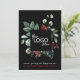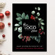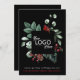 Elegant black corporate Christmas holiday greeting card featuring your business logo framed by a nature-inspired watercolor of a red cardinal and seasonal winter greenery. Personalise your Christmas greeting as well as your business name in simple red and white typography.