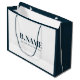 Custom your own Company Business Logo Promotional paper gift bag/shopping bag with the company logo on a colour editable blue and white background, Easy to use the template. You can change the background colour, font, and text size as you want. Free feel to message me through my Zazzle store for any help needed.