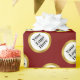 You can replace the display image with your company logo. It will form a pattern with the logo inside a white circle that has a faux (not foil) border. The wrapping paper is deep red.