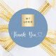 A dusty blue coloured background. Add your own business logo. White text: Thank You - with a small heart.