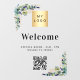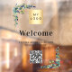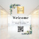 A transparent background and black text. Decorated with eucalyptus corners. Personalize and add your logo and text. Add your web url to your website (or social media account) to the QR code.