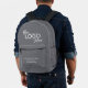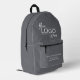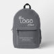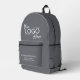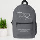 Modern professional grey backpack for your business that features your logo. Add your business name, slogan, website, socials or other text in simple white typography on the front pocket.