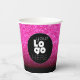 Easily upload your logo or other custom graphic to this 8oz paper party cup. Low minimums, and no costly set-up fees. The background / cup base is a simulated glitter dust in neon pink and matte black ombre