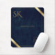 This design features elegant and professional luxurious navy blue leather textured mousepad, with minimalist gold accents and customisable monogram and template for logo. Perfect for luxury corporate gifting, businesses looking for premium, high quality office supplies and gifts for clients, employees or executives.
