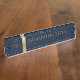 This design features elegant and professional luxurious navy blue leather textured desk name plate, with minimalist gold stripe and customisable template for logo. Perfect for luxury corporate branding, businesses looking for premium, high quality office supplies for clients, employees or executives.