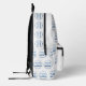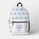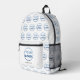 Look professional with a branded backpack featuring your business logo in a pattern and on the front pocket with your website on a white background. Replace the sample logo with your own and add up to two lines of custom text in the sidebar. Your logo can be any colour and any shape.