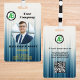 A professional and modern Personnel ID Badge designed for corporate staff identification and security. This badge features a sleek rectangular layout with a clean, minimalist design in a corporate colour palette. QR Code, Located at the bottom of the badge, scannable for quick access to employee data, attendance systems, or digital credentials.