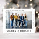 Minimal modern Christmas holiday card for your business featuring a photo of your corporate team and "Merry & Bright" in stylish typography. Personalise your company name and customer/client thank you message in simple typography. On the back, customise an additional message of gratitude, upload your logo and input your website address to create a scannable QR code.