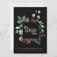 Elegant black business Christmas holiday greeting card featuring your company logo framed by a watercolor illustration of a red cardinal and seasonal winter greenery. Personalise your greeting as well as your name in simple red and white typography. On the back, add an additional message of customer appreciation and and input your website address to create a scannable QR code.