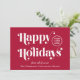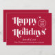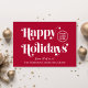 Red corporate Christmas card for your customers, clients, employees, affiliates, etc., with "Happy Holidays" in stylish white typography, your company logo, and a seasonal greeting (thank you, from all of us, etc.) and business name in simple modern white typography On the back, input your website address to create a scannable QR code that your customers can scan to easily connect to your online platforms.