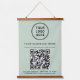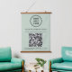 Modern light sage green hanging tapestry sign for your business with your QR code for customers to scan for a list of your products, services and prices. Add your logo, business name, QR code, phone number and street address in simple typography. The colours of the background and text can be changed to your branded colours by editing in the design tool.