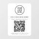 Modern white window cling sign with rounded corners for your business with your QR code for customers to scan for a list of your products, services and prices. Add your logo, business name, QR code, phone number and street address in simple typography.