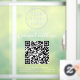 Modern "connect with us" clear window decal for your business with your QR code for customers to scan for a list of your products, services and prices. Upload your logo and QR code and add your business name, phone number and street address or other information in simple white typography.
