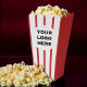 Red and white striped movie / carnival popcorn box. Personalise it by adding your own business logo or image.