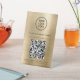 Elegant and simple brushed gold faux metallic table top pedestal sign with your business website's QR code for customers to scan for a list of your products, services and prices. Upload your Qr code and logo and add your company name, phone number and street address or other information.