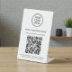 Modern and simple table top pedestal sign for your business. Upload your logo and your website's QR code for customers to scan for a list of your products, services, prices, etc. Add your company name, phone number, website or other information in simple typography. Add your instagram and facebook handles for customers to follow you online.