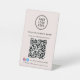 Modern light pink table top pedestal sign for your business. Upload your logo and your website's QR code that your customers can scan for a list of your products, services, prices, etc. Add your company name, phone number, website or other information in simple typography. Add your instagram and facebook handles for customers to follow you on social media.