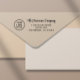 Modern return address stamp for your business featuring your company logo, your name in a stylish script and your address in simple lettering. If needed, you can adjust the size of the script for longer or shorter names by editing in the design tool.