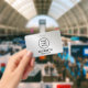 Modern silver faux metallic name badge with your company or organisation's logo. Add a name and title in simple typography.