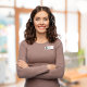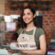 This design features a name tag with your logo here, perfect for business, with employee information, great for retail, or any professional, with a branded, simple, minimalist modern style, perfect for corporate titles, or simple job title.