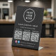 Simplify customer engagement and showcase everything your business offers with this custom 3 QR codes pedestal sign, designed for modern, high-traffic counters and reception areas. Featuring a clean black background, minimalist white typography, and your logo business name, and Facebook and Instagram social media handle, this professional tabletop sign allows you to display up to three scannable QR codes, each with its own custom label. Perfect for directing customers to multiple destinations -- such as menus, services, pricing, booking pages, payments, reviews, social media, or Wi-Fi -- this sign creates a seamless, contactless experience. Zazzle automatically generates each QR code from the website links you enter. Ideal for restaurants, cafés, salons, spas, retail stores, clinics, offices, events, and pop-up shops, this multi-QR pedestal sign reduces clutter, replaces printed handouts, and presents your brand in a polished, professional way.
