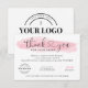 Cute Small Business Company Corporate Custom Logo Social Media Blush Pink Watercolor Splash Stroke Thank You Card